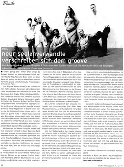 Inzwischen laufen die Songs von Soulmates auf acht Radiostationen in der Rotation. Damit noch mehr dazu kommen, gehen The Soulmates, die "Seelenverwandten", in diesem Frühling auf Promo-Tour (siehe Tourdaten). Wichtig für den Erfolg ist die Nähe zum Publikum, bekräftigt Hunziker. "Das Abenteuer besteht darin, herauszufinden, ob man ein Publikum findet. In der Schweiz ist es ganz wichtig , dass man sich ein Publikum aufbaut. Man darf nicht davon ausgehen, dass es Dutzende von Clubs gibt, die immer ausverkauft sind, egal wer spielt. Insofern braucht es eine Partnerschaft mit den Veranstaltern. Wenn man viel Geld verdienen will, kann man sich auf Firmenanlässe spezialisieren. Das wollen wir aber nicht." The Soulmates haben sich mit Herz und Seele dem Groove verschrieben. Da gibt es keinen Platz für faule Kompromisse.