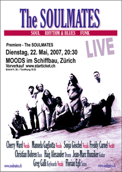 Das Rezept von The SOULMATES ist eine Mischung aus Soul, R&B und Funk, bei welcher der Gesang im Vordergrund steht. Kein Wunder: Die vier Vocalisten Freddy Carnel, Manuela Gagliotta, Sonja Göschel und Cherry Ward prägen den SOULMATES Sound als Chor und als Leadsänger. Begleitet werden sie vom Schweizer Keyboarder Greg Galli, der selbst ein hervorragender Leadsänger ist, sowie von Drummer Haig Alexander, Bassist Christian Bohren, Gitarrist Jean-Marc Hunziker und Saxophonist Florian Egli. Als gestandene Musiker bringen wir alle eine reiche Lebens- und Konzerterfahrung mit in das Projekt The SOULMATES.